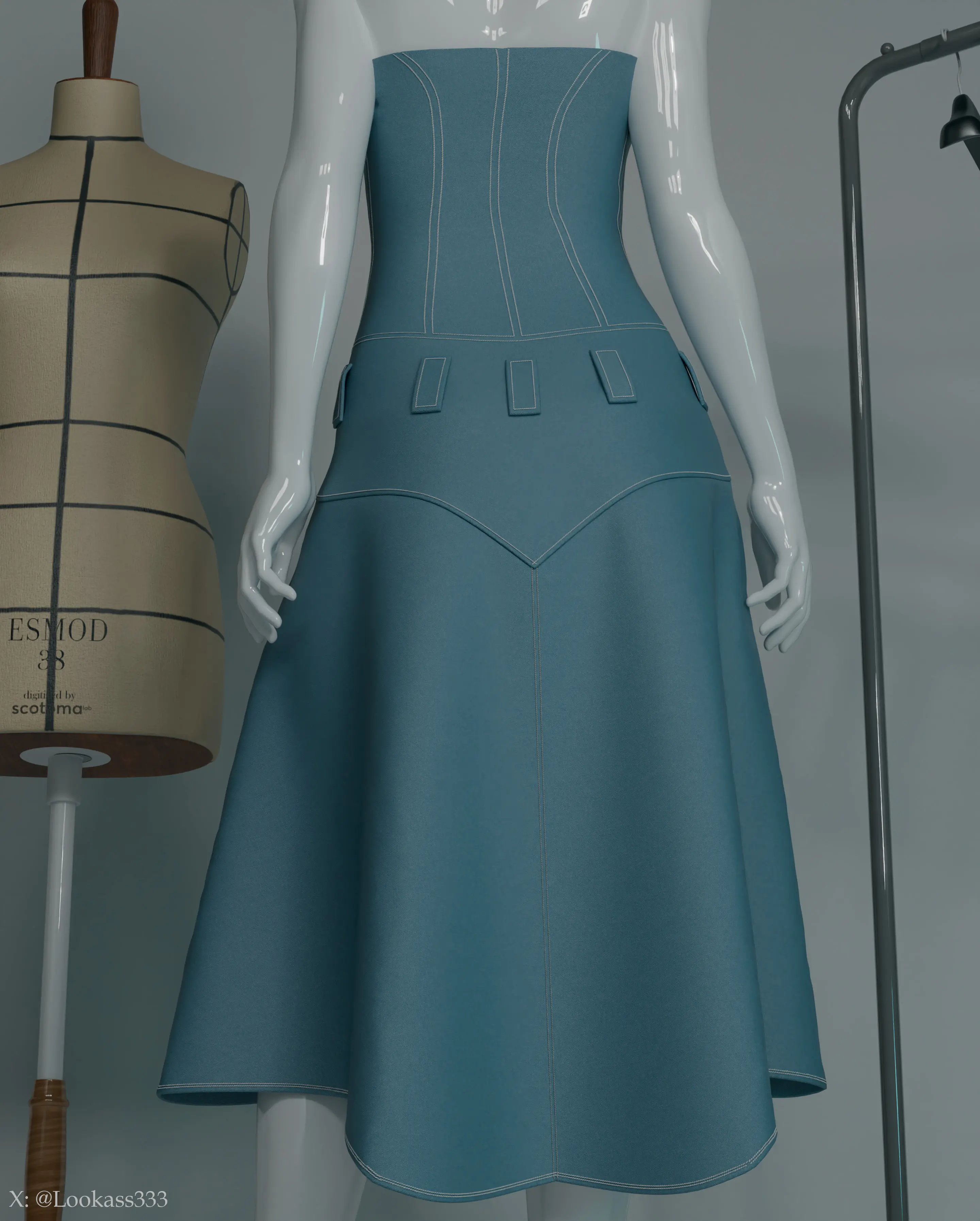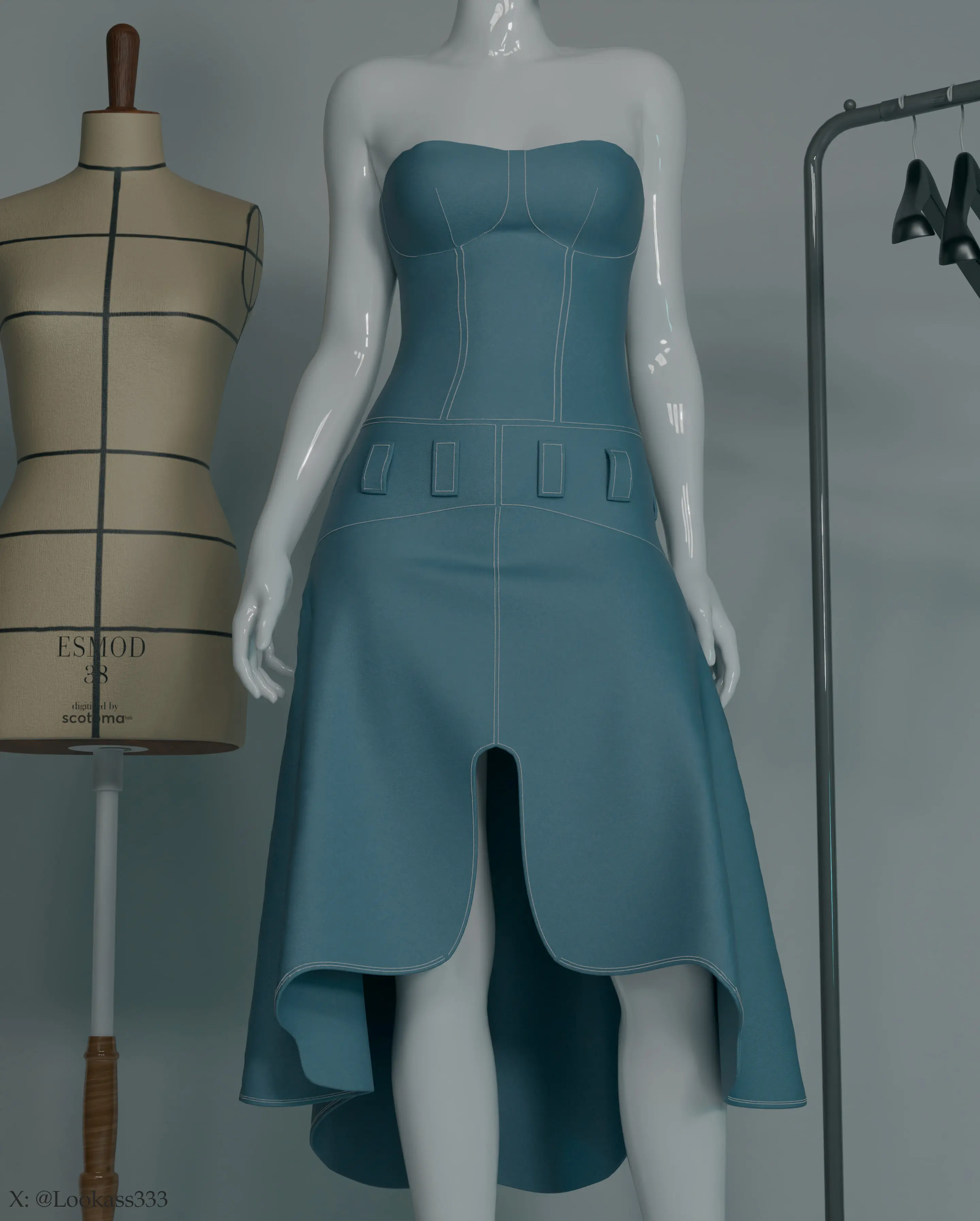 A estas alturas ya me desenvolvía bastante bien con el programa y tenía ganas de diseñar mis primeras prendas, al ser mi primera colección tenía muchas ideas en la cabeza por explorar, finalmente opte por siluetas ceñidas a la forma del cuerpo para crear una silueta estilizada, una ligera caída en la parte trasera inspirado en la cola de un cisne y los trajes de cola.
