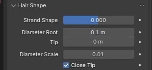 En Particles>Hair Shape: reducir “Diametter root” entre 2-3
