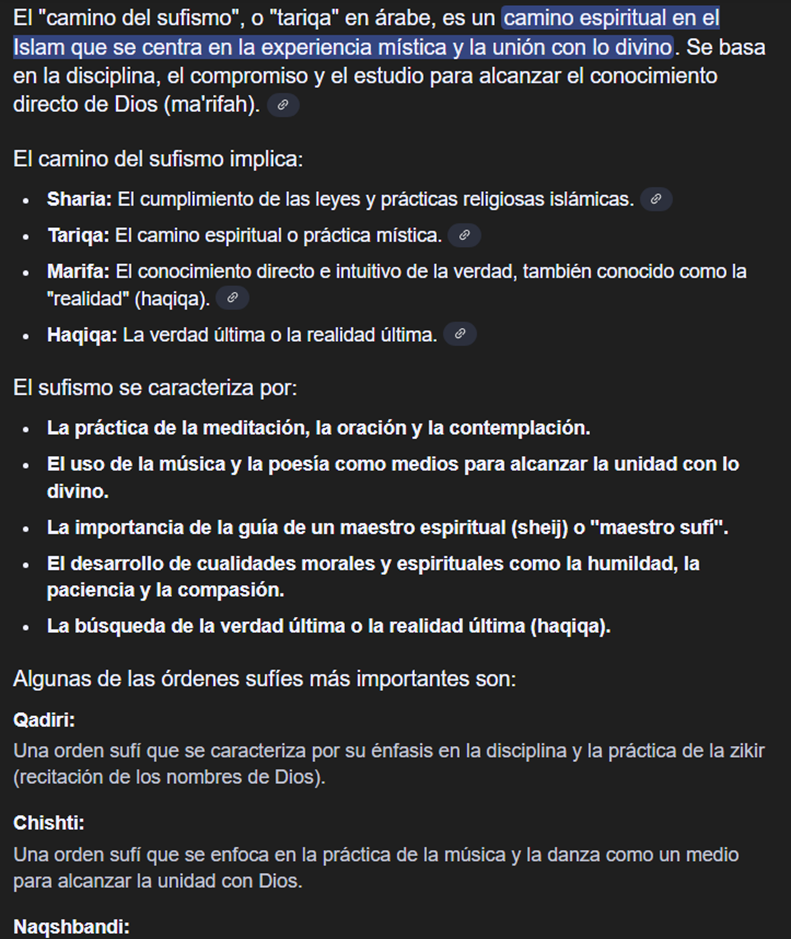 El sufismo en general es una corriente mística islámica, casi siempre práctica, en la que los devotos buscan encontrar las verdades divinas y el conocimiento a través de una experiencia personal y directa con dios, lo cual se puede interpretar como una especie de gnosis o de iluminación, consiste en una variedad de caminos místicos diseñados para determinar la naturaleza de distintas cuestiones.