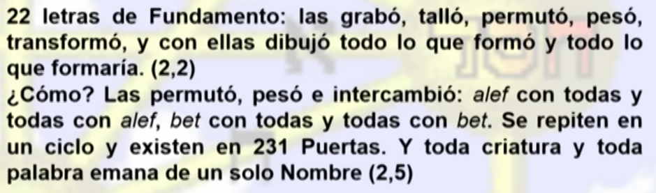 Continua diciendo que son 22 letras, las del alfabeto hebreo, y como lo hizo, mediante la permutación de ellas, de cada una con la siguiente.
