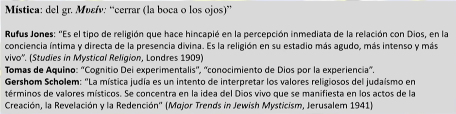 Cábala: Gershom Scholem en su obra “Las grandes tendencias de la mística judía” dedica el primer capítulo a meditar sobre que particularidad hace diferente a la mística judía frente principalmente a la mística islámica y cristiana, determina que son los temas sobre los que se desarrolla, la concepción de dios como creador del mundo, su revelación en La Tora y su proyecto de redención para la humanidad. También intenta definir la cábala desde un punto de vista histórico seguido por la mayoría de sus discípulos e historiadores de cábala posteriores.