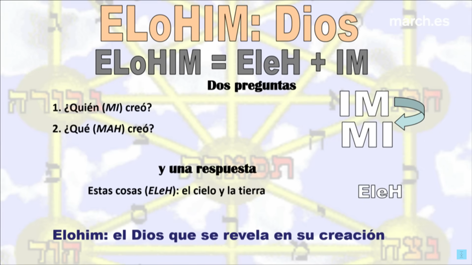 Dice el Zohar que “la creación es una vestimenta preciosa y resplandeciente de la que se recubre el dios invisible (MI)”. Por lo que (MI) el dios que no podemos conocer que ha creado (EleH) estas cosas, forma el nombre “EloHIM” que significa el dios que se revela en su creación