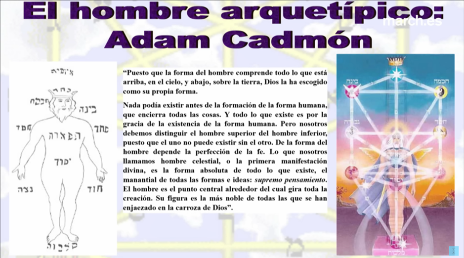 Fue creado a imagen de dios y eso significa que para los cabalistas dos cosas, que el poder las sefirot, el paradigma de la vida divina existe y opera también, por otra parte, que el mundo de las sefirot puede hacerse visible en la imagen del hombre, que es el ser más perfecto de la creación.