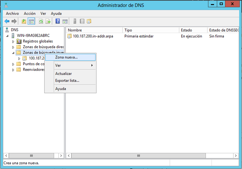 Para configurar la resolución de nombre debemos crear la zona directa introduciendo la dirección de red y la zona inversa con nuestros dominios y host