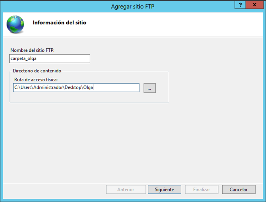 Agregamos el sitio FTP, para ello agregamos el host en DNS