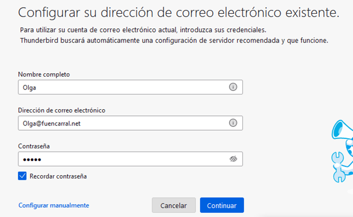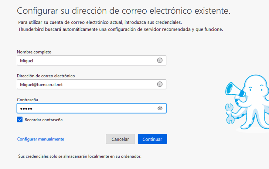 Ahora solo queda iniciar sesión en Thunderbird y comprobar que funciona